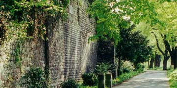 Bis zum Ende des 4. Jhs. wird demzufolge das Kastell und die Stadtbefestigung (römische Stadtmauer) ausgebaut. Siehe links: Teilstücke der römischen Stadtmauer